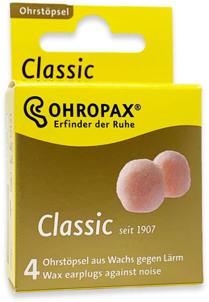 Az Ohropax Classic egy bevált termék zajvédelmi célokra, melyet 1907 óta gyártanak. Egyedülálló összetétele, mely vazelinbe és paraffinba mártott vattából készül, olyannyira megállta a helyét, hogy alig változott a kezdetektől.